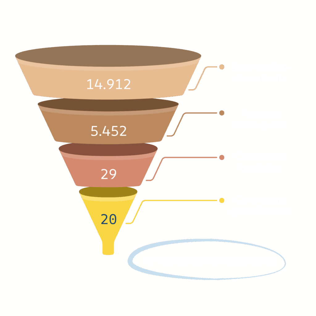 O tráfego pago funcionou de forma eficaz, validando o público e gerando oportunidades reais.